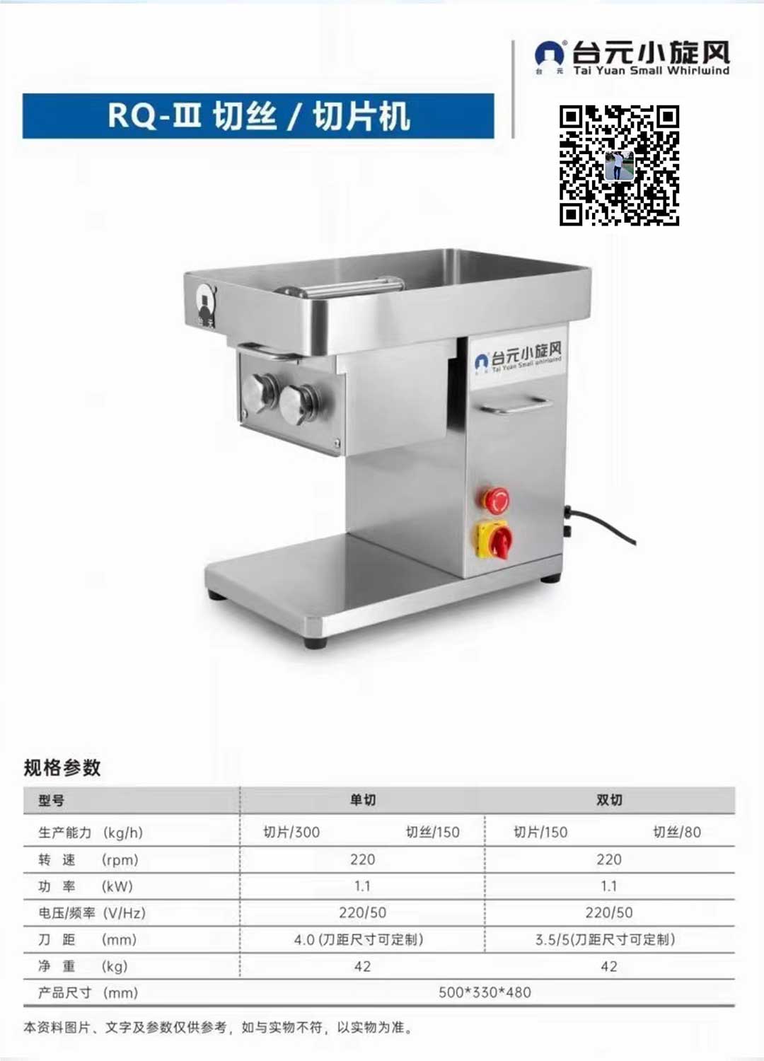 :RQIII切肉机采用先进的切割技术,确保切出的肉片薄厚均匀,提升菜品的整体质量。